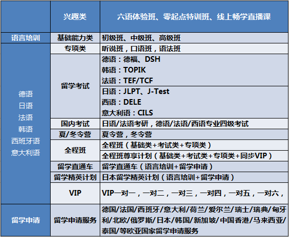 (全程班、直通车、精英计划、VIP、留学申请类产品)