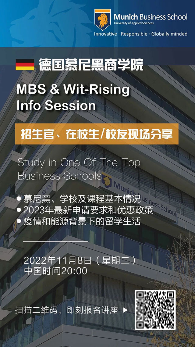 11月8日晚20:00,德国精英商学院代表—MBS慕尼黑商学院招生活动来啦!