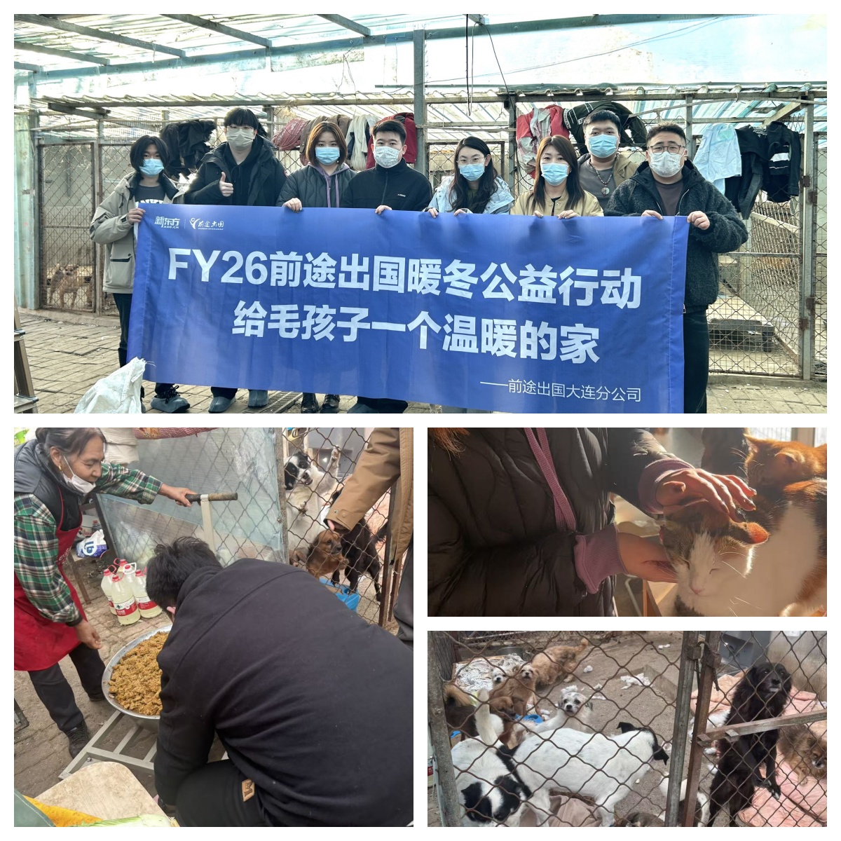 寒冷的冬天即将到来,为了让流浪毛孩子们能温暖过冬,2025 年 11月 下旬,前途出国总部发起 “暖冬公益行动 —— 给流浪毛孩子一个温暖的家”这一公益活动,联动全国分公司共同参与。这不仅是对每一个生命的真情关爱,更是践行企业社会责任的坚定行动!