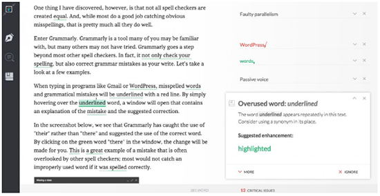 通过简单的注册之后,可以在网页或者客户端中对你的文章进行校对和自检。它拥有非常强大的语法检查系统(包含了超过400个以上的高级语法规则),并且可以根据文中的意思,正确地调整词汇的拼写错误和标点哦。在高级的会员版本中,更是可以提升用词的专业度和精准度,以及查询相似度哦。
