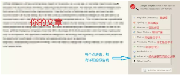 除了语法和拼写检测之外,PaperRater还提供针对你文章的写作建议,并且可以查重!