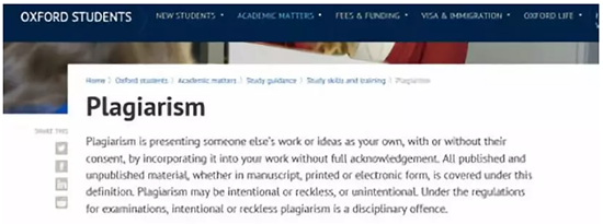 牛津大学对学术抄袭(Plagiarism)做出明确定义: