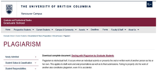 英属哥伦比亚大学也对抄袭做出了明确的定义: