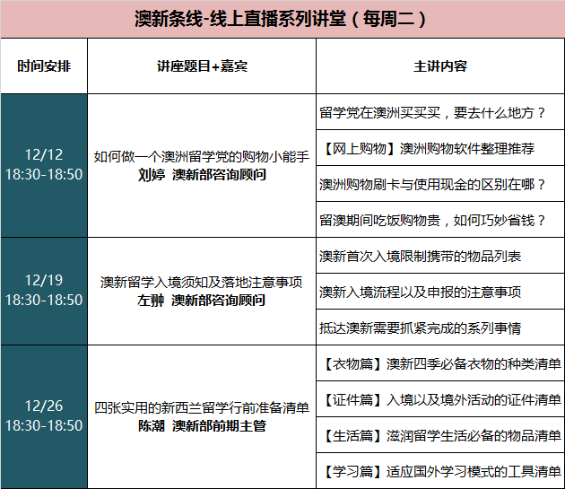 12月份,澳新留学行前指导系列讲座