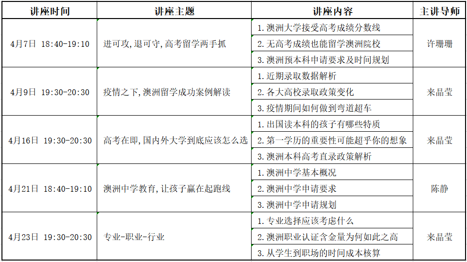 从事澳新留学行业12余年,澳大利亚移民局QEAC认证顾问,全国新浪五星顾问。累计服务5000余名学生,单年服务留学澳新两国学生居全国榜首,擅长各种疑难案例,以耐心细心,专业优质的留学规划深得客户好评。
