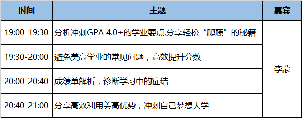 本次美国高中学业规划分享会,将为到场学生带来冲刺GPA 4.0+的学业要点分析,分享如何高效利用美高优势,教你如何轻松“爬藤”,并为大家讲解如何避免美高学业的常见问题的解析,高效提升分数。