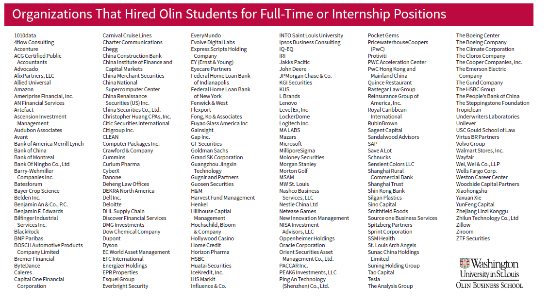 而比较青睐WUSTL毕业生的单位包括: