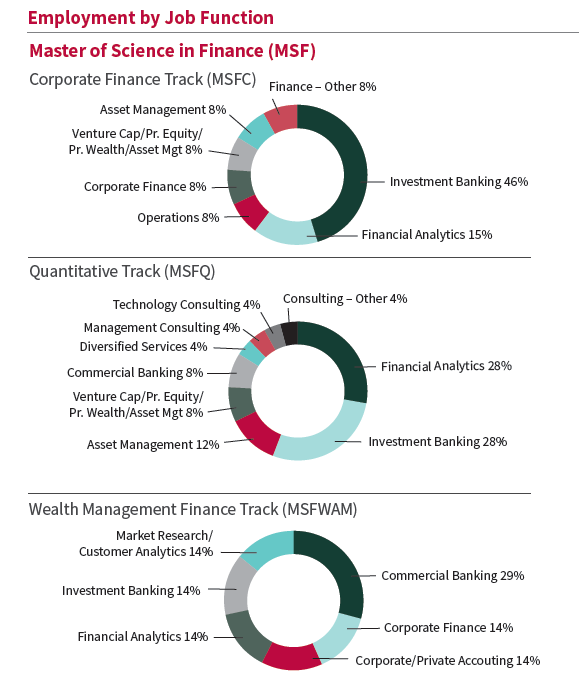 学生的就业方向根据track不同也稍有不同,公司金融track的学生就业最多的是投行,计量金融主要是投行和金融分析,财富管理track的学生就业比较均衡,商业银行占比相对更高一些。