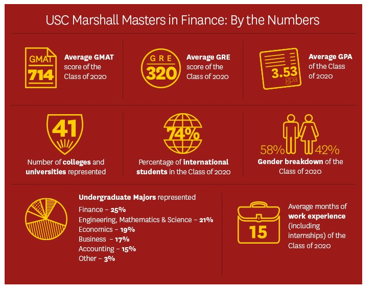 南加州大学的商学院下开设了本科,硕士,博士,以及各种证书课程。其中硕士和博士课程是所有商学院中含金量高且申请难度较大的学院之一。其中硕士课程除MBA之外,金融,会计,商业分析,供应链管理,管理等,项目全面,吸引了全球的商业人才。我们重点来分析一下其金融专业是申请情况。