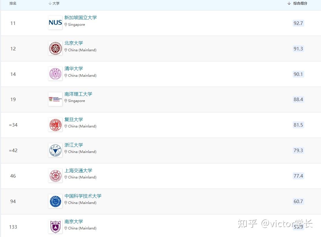 从下图,我们可以看到新加坡国立大学的排名与北大清华类似;南洋理工大学也与复旦、浙大、上海交通不相上下。你说他水呢,但起码它又能在这上面排上名。