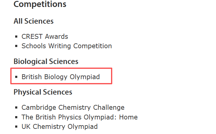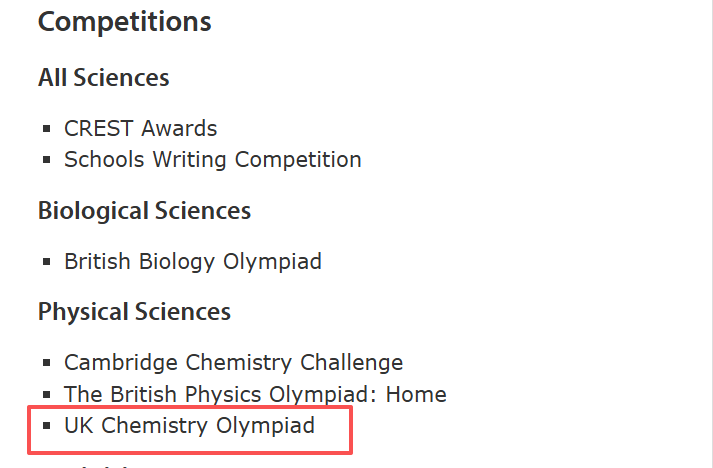 下图来自剑桥自然科学专业推荐竞赛名单: