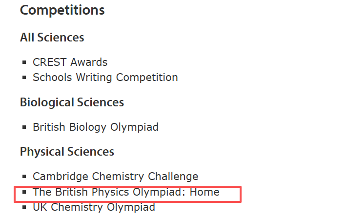 下图来自剑桥大学自然科学专业推荐竞赛名单: