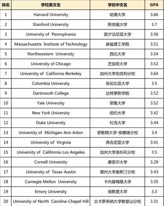 你看到的GPA一般是50%水平的GPA,因此,你必须保证你的GPA是在50%之上,才会比较有竞争力。如果你的GPA达不到理想学校的要求,就要在SAT/ACT等其他方面更加出色,来提高自己的竞争力。