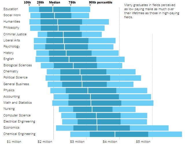 这些大学生更有条件去选择低收入领域的专业,因为他们的人脉能帮他们找到好工作。