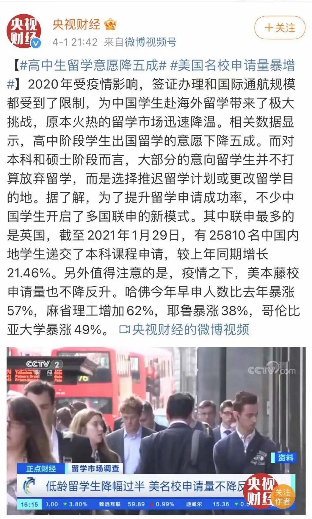 从新闻内容中看:低龄留学深受疫情冲击;本科和硕士申请者倾向于选择推迟与暂缓,而不是取消计划;为了提升升学成功率,多国联申成为新趋势;美本藤校申请量不降反升!