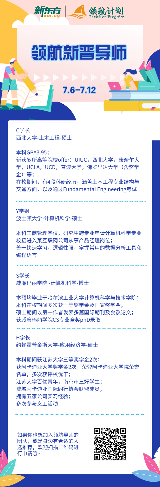 文章的最后,再让我们来看看上周领航导师团队中又加入了哪些优秀的学长学姐吧~~