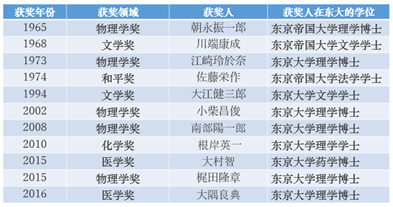 (东京大学标志性建筑之一,安田讲堂,建于关东大地震发生后的1925年。)经过百余年的发展,东京大学已经成为一所拥有完备的学科院系、先进的教学及实验设备、并且努力推进国际化的一所世界名校。近几年来,每年都会有日本学者获得诺贝尔奖,目前为止,其中有11位毕业于东京大学。除此之外,近代文豪芥川龙之介、夏目漱石、川端康成等都毕业于东京大学。东京大学还培养了众多日本政治家、外交官、企业家等社会精英,在历代日本首相当中,有15位毕业于东京大学(如吉田茂、中曾根康弘、佐藤荣作)。
