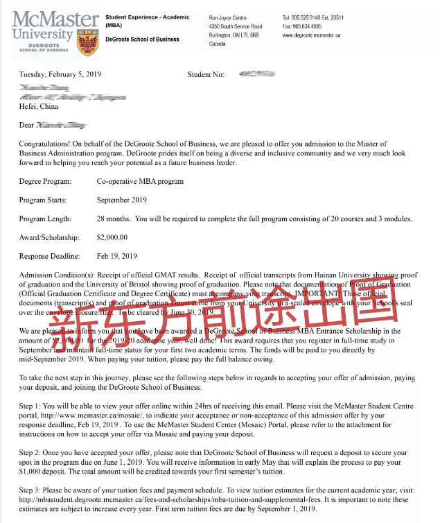 面试没过多久,学生在大年初一收到了麦克马斯特大学录取的邮件,同时而来的还有2000加币的奖学金,以及她最想要的带薪实习课程,真是非常完美!让我们恭喜她!