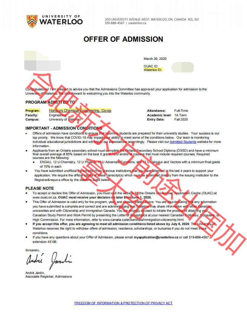 努力终有回报的,万事俱备,只欠offer,学生于2020年3月份以后陆续收到了滑铁卢大学、多伦多大学、麦克马斯特大学、西安大略大学,皇后大学的录取,最后,学生决定接受滑铁卢大学化学工程专业带薪实习的带奖offer,继续走上了学霸的道路。