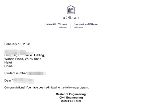 硕士——双非院校学生成功拿下渥太华大学土木工程硕士录取