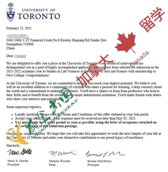 【本科】多伦多大学生命科学OFFER