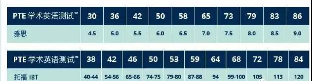 PTE学术英语考试与TOEFL、IELTS一样使用欧盟语言共同参考架构(CEFR)评分标准,因此可以互相转化。同时,PTE学术英语考试成绩从10分至90分,英语语言能力考查范围远比TOEFL或IELTS广泛,且成绩以平均散布的分数点计算。目前,PTE正在崛起,但毫无疑问托福、雅思仍然是较为通用的留学考试语言考试。