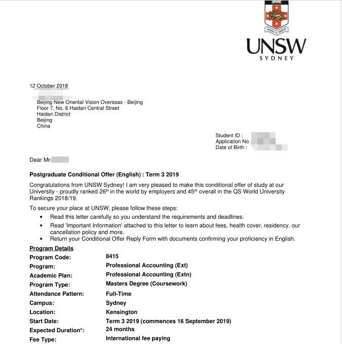 【成功案例】跨专业成功申请新南威尔士专业会计