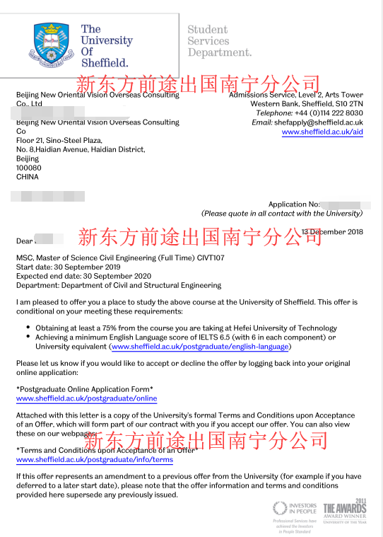 【成功案例】211大学低均分斩下谢菲尔德大学offer