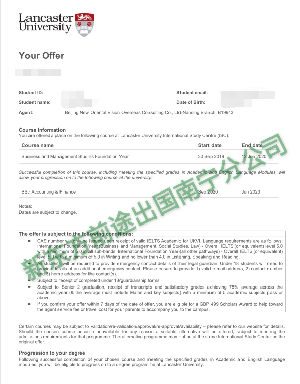 同学和家长19年4月联系到我们前途出国南宁分公司,想去英国留学。学生其实也是今年才有留学的想法,但从没有开始准备工作,之前英语水平一般,雅思有差不多4.0的水平。和家长学生了解了孩子的职业规划后,我先把孩子能申请的学校、专业、预科录取要求(高一高二成绩、雅思要求)、预科完成后的本科衔接专业等信息在方案里整理好,和家人商量后,选择了孩子感兴趣的会计和金融专业。