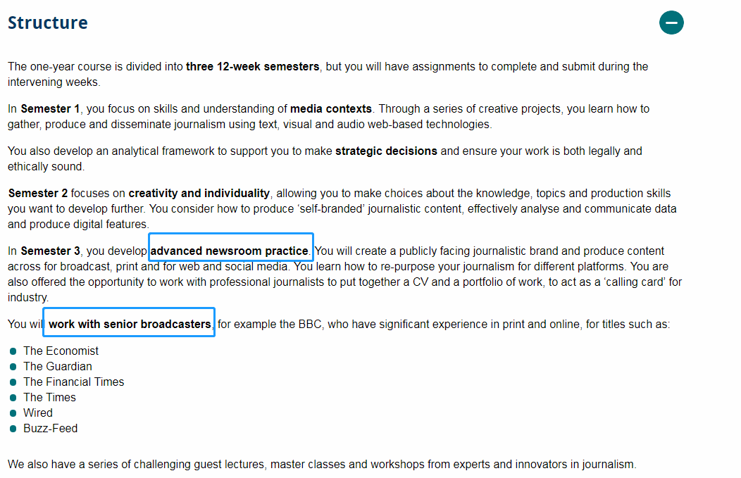 最棒的地方就在于能提供非常多的实习机会,包括BBC、Press Association Training Centre等。