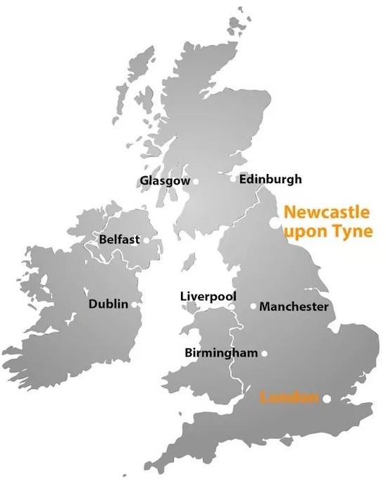 大学位于英格兰纽卡斯尔市中心泰恩河畔,距离伦敦三个小时火车车程,距离爱丁堡仅需一个半小时火车车程。作为英格兰东北部首府城市,海外学生可以选择从伦敦、荷兰阿姆斯特丹、法国巴黎或者阿联酋迪拜转机到纽卡斯尔国际机场。每年开学季都可以在大学网站预约免费接机服务。纽卡斯尔市完善便捷的公交和地铁网络方便学生的日常出行。