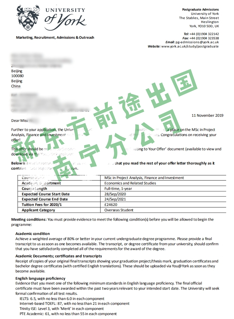 约克大学的招生原则是采用滚动制招生,申请制度则是先到先得。每年的9月-12月,属于申请的第一阶段,大部分OFFER 会在12月左右发放出来,所以建议同学们在申请时尽量赶在第一阶段投递申请。申请过程中,personal statement发挥着重要的作用,因此建议同学们在确定留学以后早日开始相关实践活动,为personal statement展现自己优势做好充分准备。
