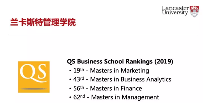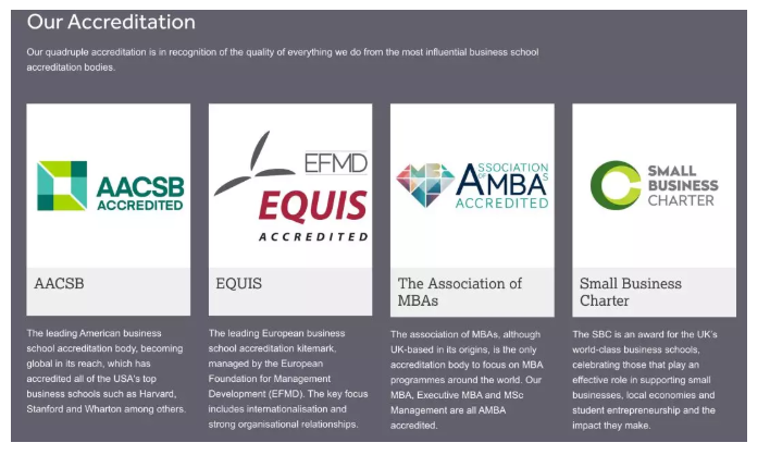 一般来说,牛X学校的商学院能有三重认证就很厉害啦,但是兰卡有四重认证(AASCB, AMBA, EQUIS, SBC),其牛X程度可见一斑。要知道,整个英国也只有伦敦商学院(LBS)和兰卡斯特大学商学院(Lancaster UniversityManagement School,LUMS)达到了“六星级商学院”的标准。