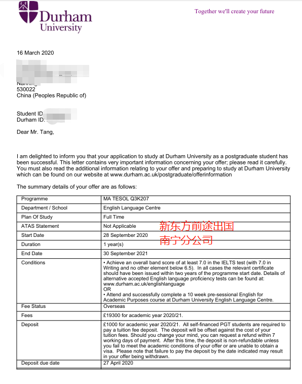【成功案例】半年的等待换来杜伦TESOL延期offer