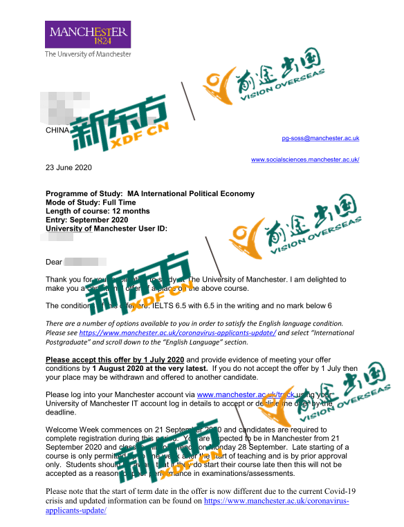 【成功案例】双非财经生跨专业获曼彻斯特大学录取