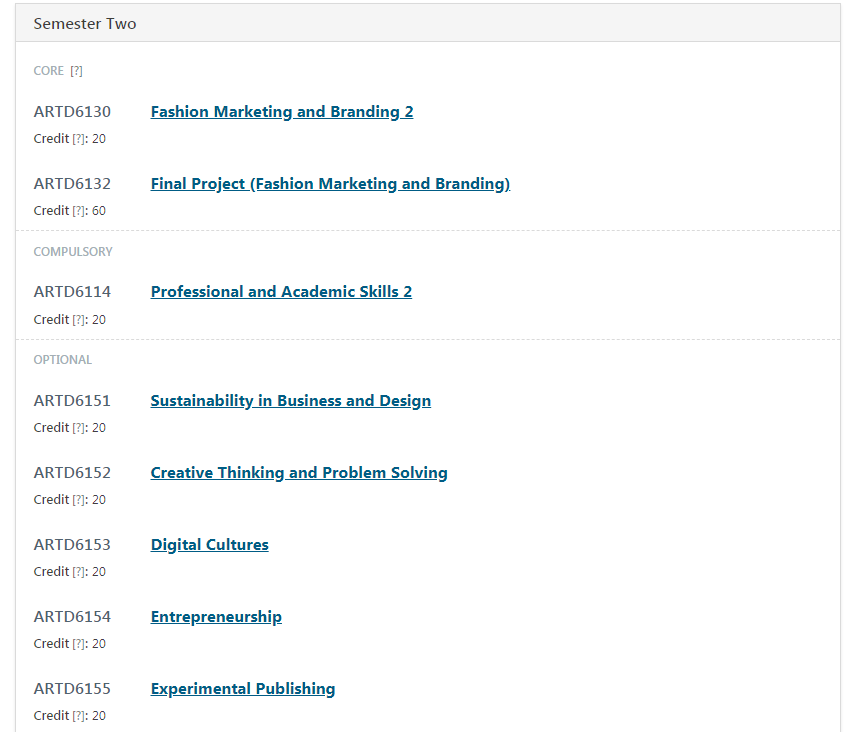 值得注意的是:南安还有一个专业是时尚管理 MA Fashion Management, 而这两个专业到底有啥不同?单从课程内容来看,两个专业会有部分课程是重叠的,比如时装史、企业社会责任之类。不同之处在于,时尚管理更偏向于对整个时尚行业链条的认识和把控,学习范围更为宽泛;而时尚营销与品牌则侧重于时尚产品、市场、行销这些环节。