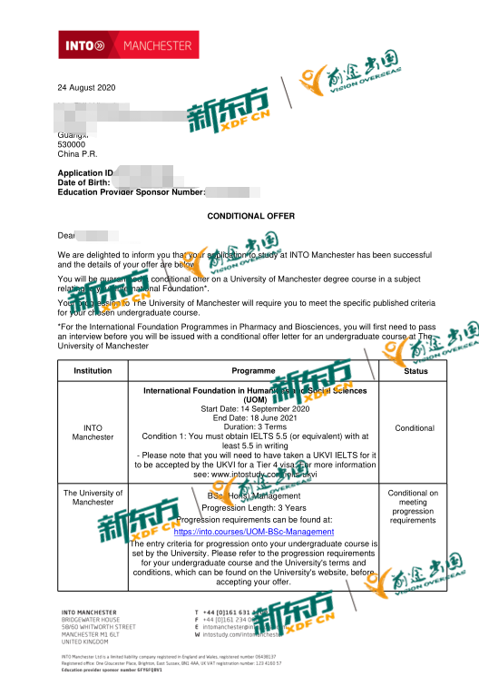 【成功案例】普高学子斩获曼彻斯特大学商科本科预科offer