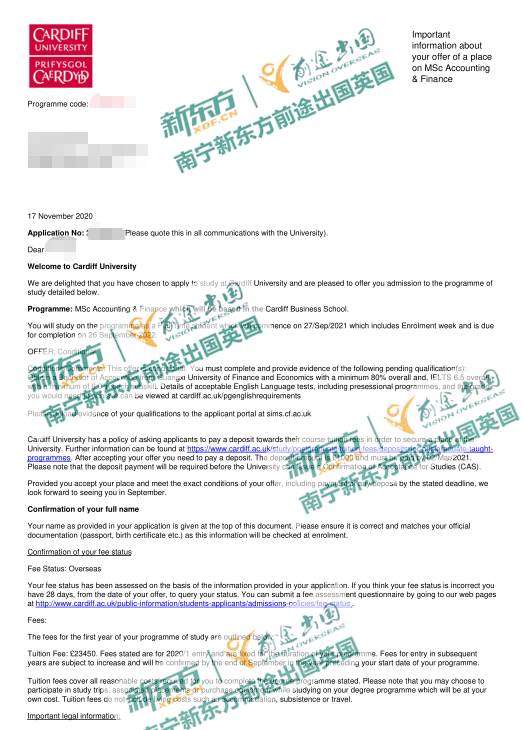 【成功案例】双非财经院校斩获卡迪夫大学会计金融专业