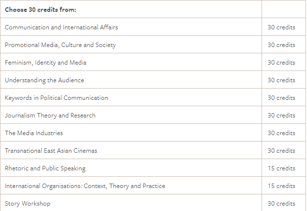 1) 学术背景要求:接受历史、文学、哲学、或者理论类为基础的传媒相关专业,择优录取,偏向于有相关专业工作经验的申请者。in one of the following:history, literature, philosophy or a (theory-focused) media-related course. We may give preference to applicants who exceed our entry requirements. Please note that meeting the entry requirements of this course doesn't guarantee an offer of a place. Relevant professional experience may also be considered from an applicant with a preferred undergraduate degree subject. We may request additional documentation to inform our decision.