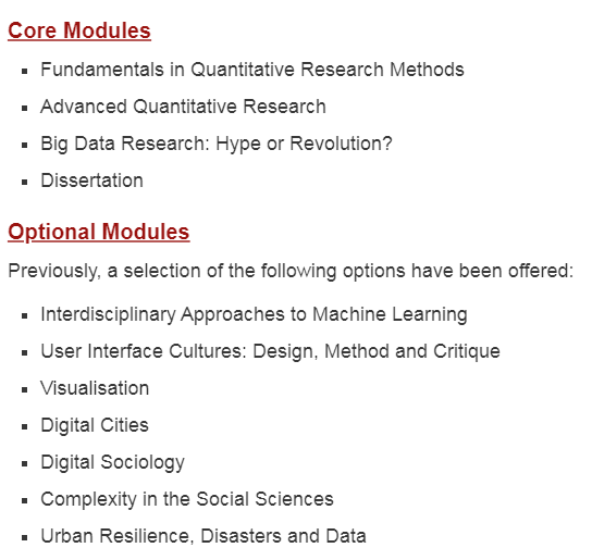 深入了解了某学生的申请意向和专业背景后,我作为留学规划师开始制定适合于某同学的申请方案。因为华威大学的数据分析专业对于学生成绩要求相当严格,是下设在计算机科学学院下面的,需要学生有很强的计算机编程语言背景或计算机科学相关背景,但某同学的课程匹配度不高,以某同学的刚刚踩线成绩申请有一定困难。所以我提出另一个申请专业建议,申请一个在跨学科研究中心下的大数据专业并跟学生一同做了专业课程的调研。