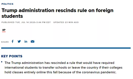这一次政策的反转,是特朗普政府在留学生政策上的尴尬大逆转。