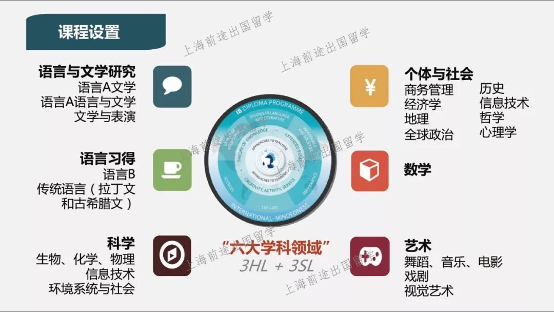 IB有这样六大学科领域,每一个学科领域都会开设不同的课程,在不同的学校可能提供的课程也各不一样。