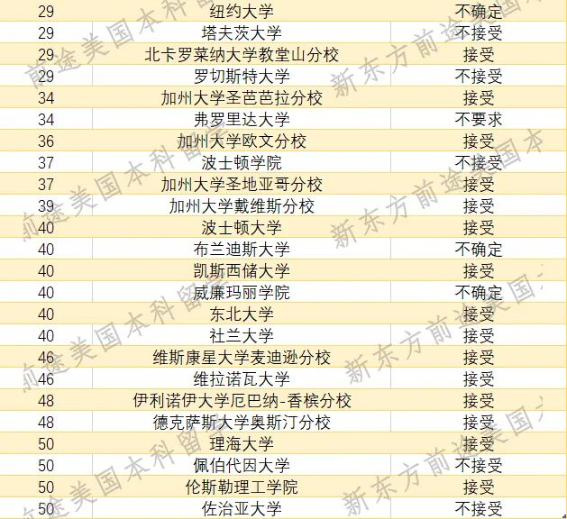 这里汇总了最新版的美国TOP 50大学是否接受家庭版托福成绩的院校名单表格,仅供大家参考: