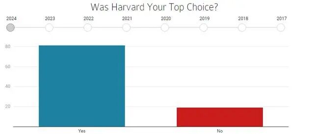 据调查,80.6%的新生首选学校就是哈佛大学。但即使是学霸也不敢只申请一所哈佛,大约38.3%的受访新生表示同时申请了耶鲁。而在这些学生中,耶鲁也录取了39.8%。