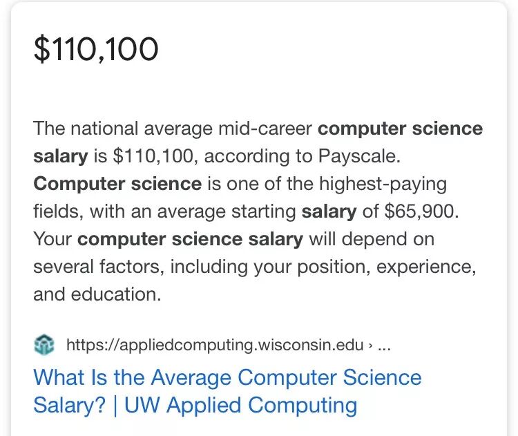 从美国其他就业网站信息来看,计算机专业也是妥妥的高薪: