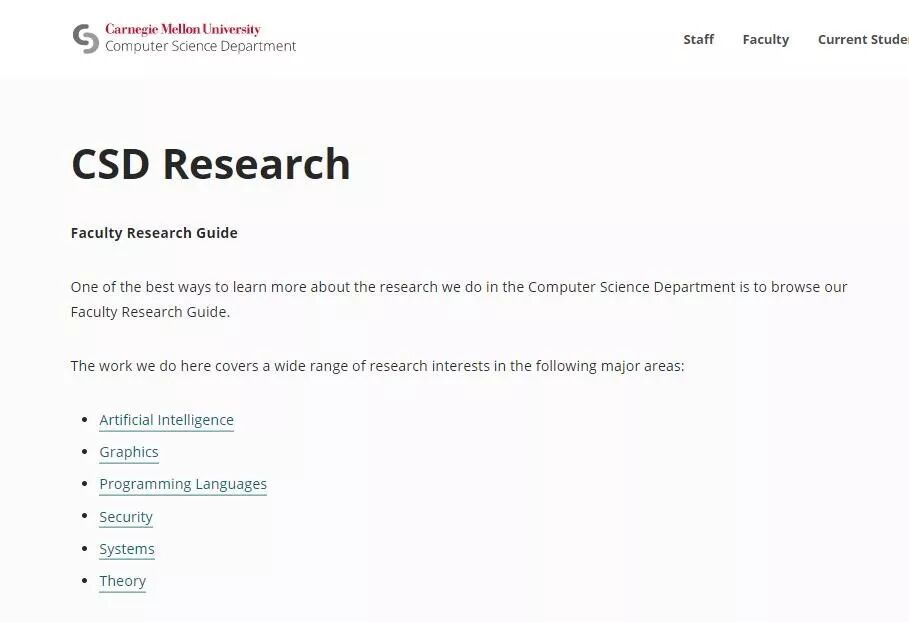 卡耐基梅隆大学的分类:人工智能,图像学,编程语言,安全,计算机系统,以及理论。