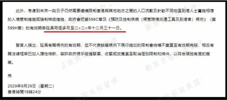 9月29日,香港特别行政区将内地来港人士强制检疫规例延长至12月31日,规则实施期间,所有内地入港的内地旅客都需要隔离14日。
