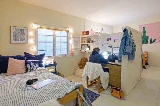 邓恩中学有4栋宿舍楼,其中3栋男生宿舍,1栋女生宿舍。每个宿舍都包括供学生使用的:一个完整的厨房,舒适的休息室,壁炉和电视,Wi-Fi接入,洗衣设施,清洁用品和多个露台。学生(在老师的监督下)必须每天晚上打扫自己的房间,保持公共区域的整洁卫生。宿舍有单人间和双人间(两人之间有隔板保证隐私),双人间的学生必须来自两个不同的国家。
