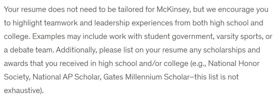 就像麦肯锡的SophomoreDiversity Leaders Internship项目官网提及:需要大一、大二低龄应聘者具备团队活动(Teamwork)、领导力(Leadership)等各项技能,如果想要脱颖而出,最好还要有商务等实际问题处理的相关经验(Problem Solving Experience)。
