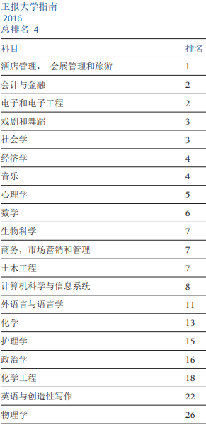 酒店及休闲管理学科可是位列世界第四,英国第一。